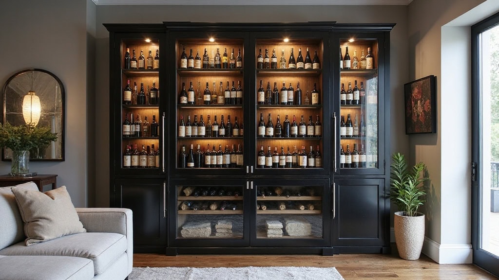 Your wine bottles become living room focal points when you mount them at eye level. Consider floating shelves that showcase labels while keeping corks accessible. Kitchen cabinets work too, especially glass-front ones that let you peek at your collection.